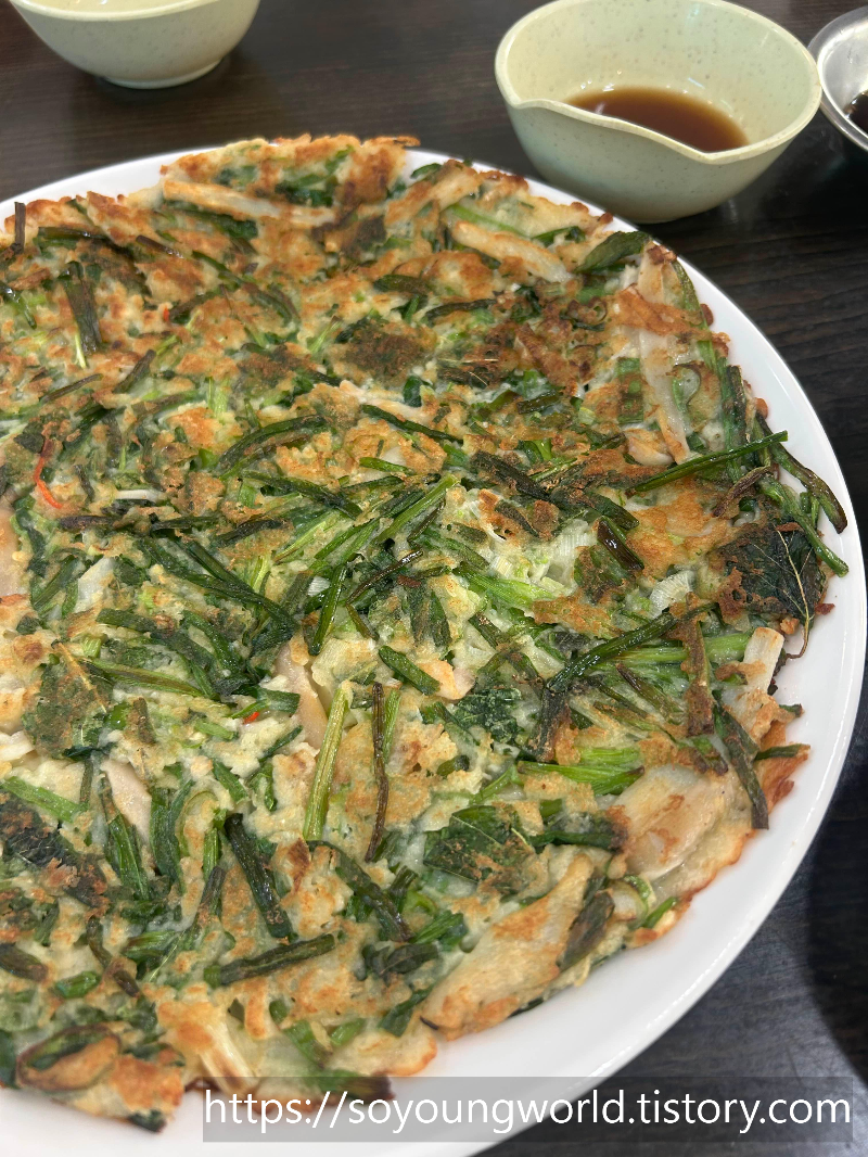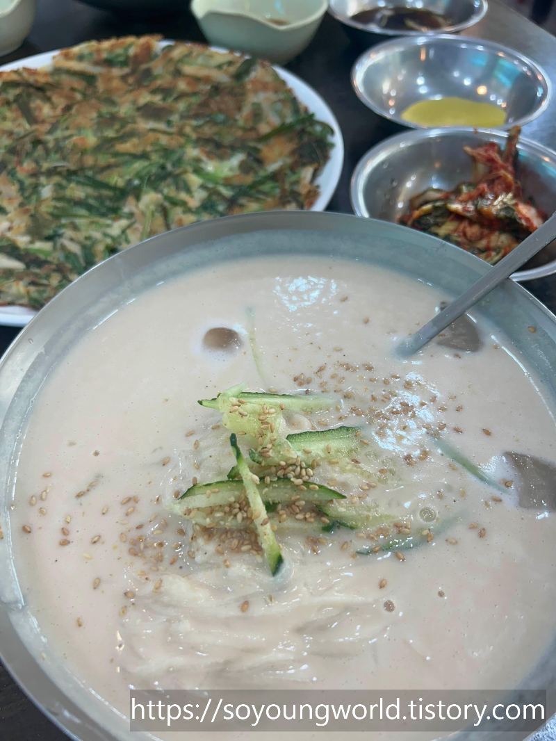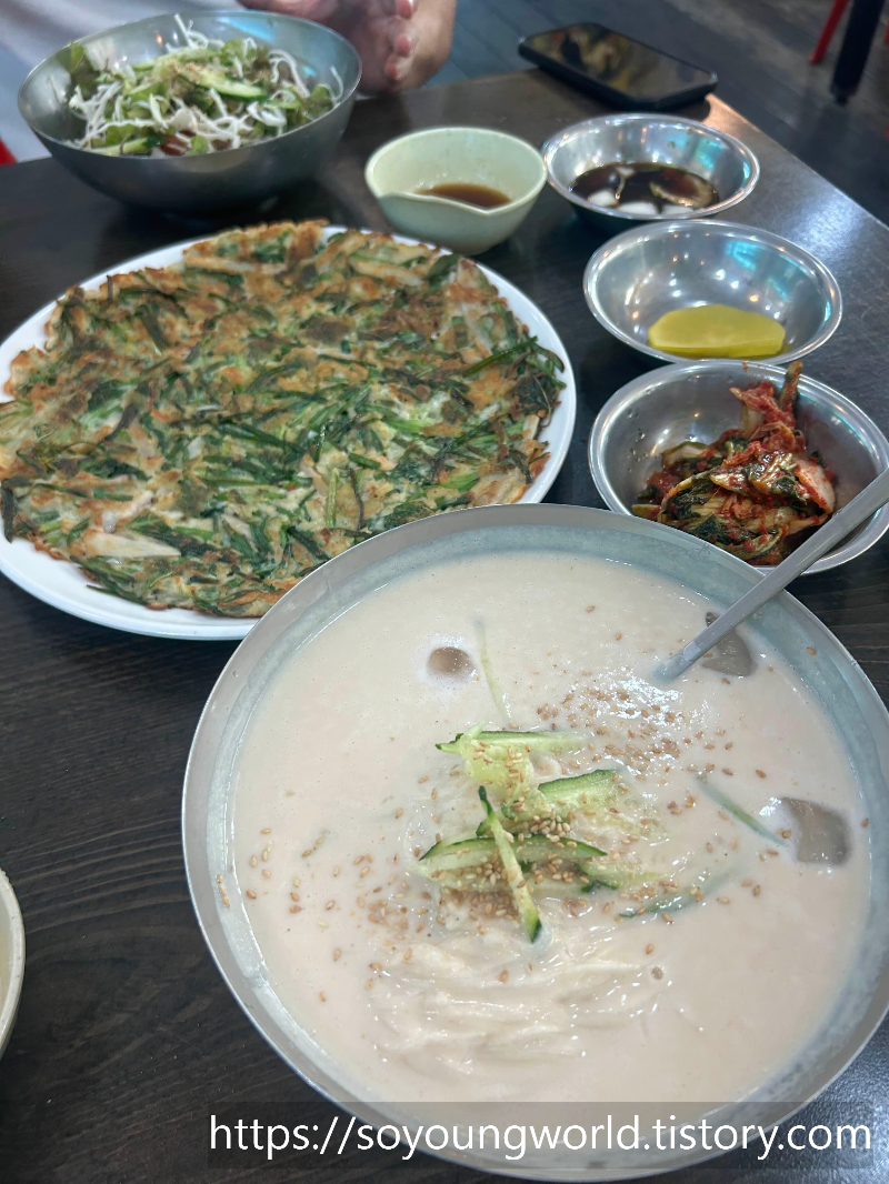 고소담백한 콩국수에 노릇한 부추전까지 너무 맛있다