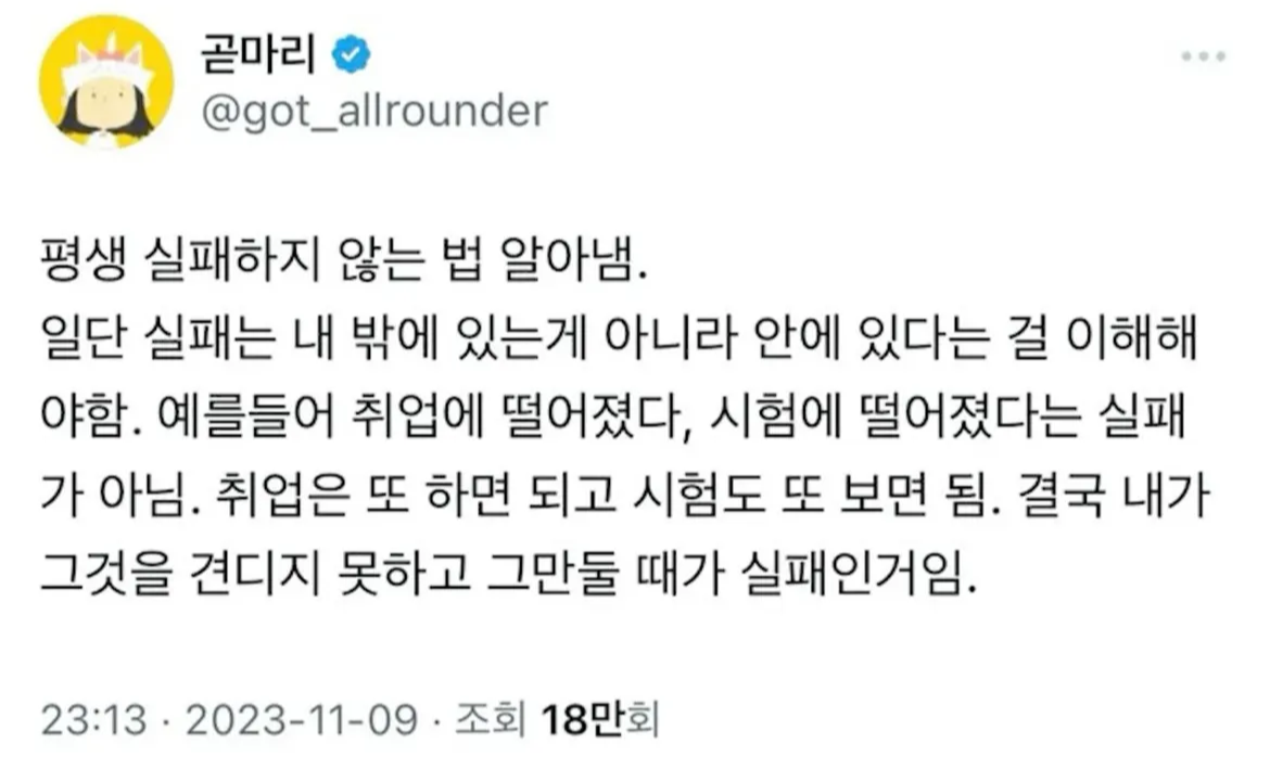 내가 놓지않으면 실패하지않은 것