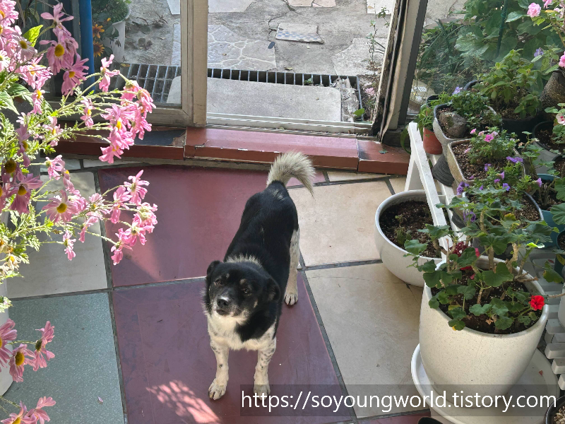 꽃밭에 우리강아지