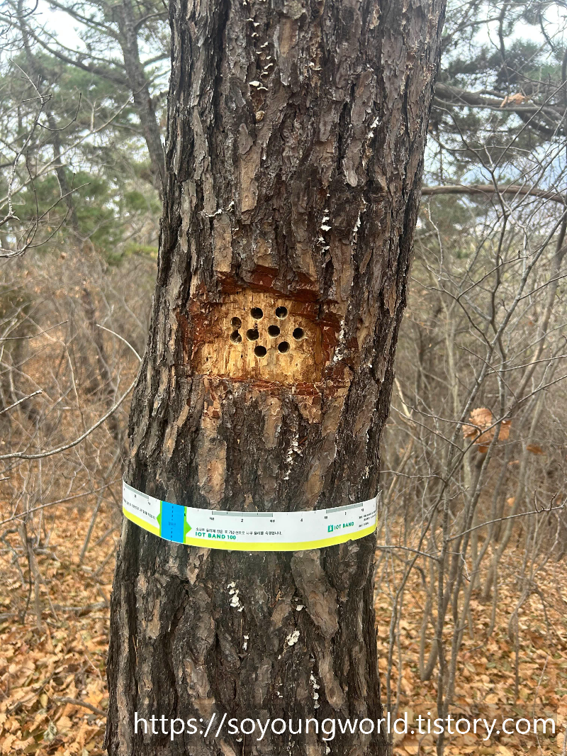 소나무재선충 치료한다고 저렇게 구멍 뚫은건가 추측만 해본다