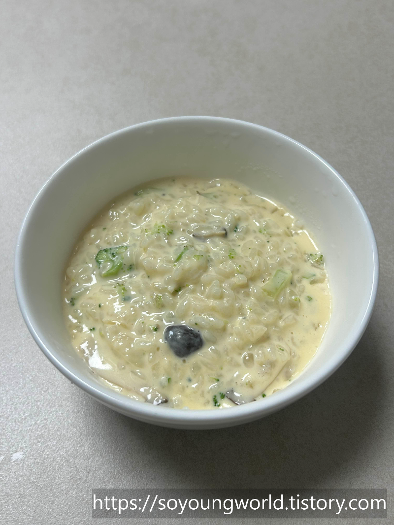 나름 맛있어서 혼자 2인분양 다 해치웠다 냉장고털이 리조또 과식엔딩