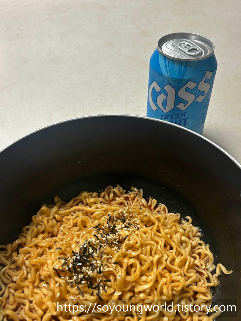 간만에 불닭볶음면이 땡겨서 맥주와 함께 냠