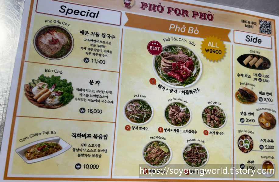 추가로 분짜 볶음밥 짜조 반미 등이 있다